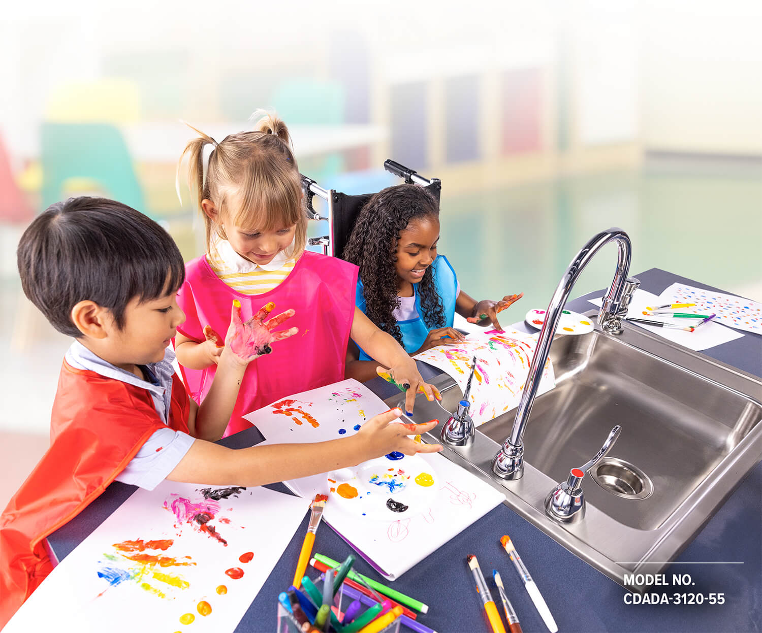 An ADA-compliant, single bowl drop-in sink designed specifically for classroom applications, CDADA-3120 measures 31"W and is offered with your choice of a 5-1/2" or 4-1/2" bowl depth. A minimum cabinet size of 36" is required. All classroom sinks feature punching for a faucet on one side and a drinking bubbler on the other.