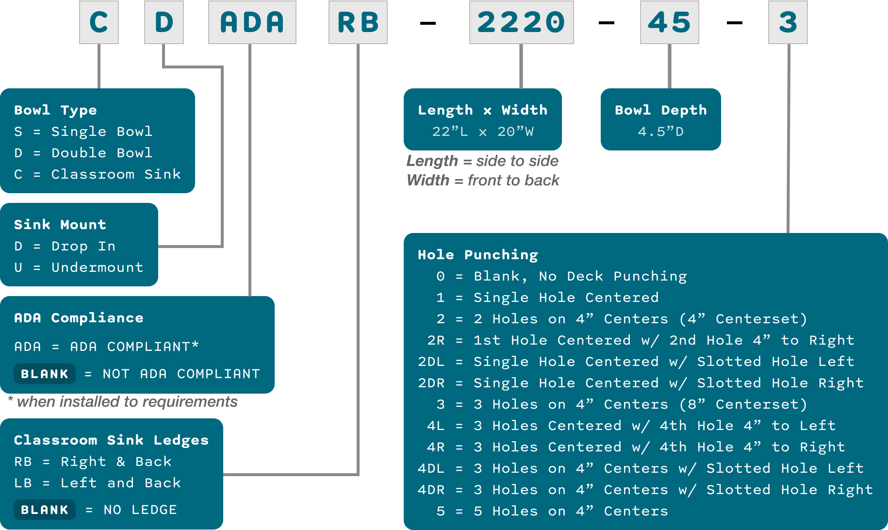 This is how our Acorn-Sinks products are numbered. The graphic below is an example. It does not necessarily reflect the product above.