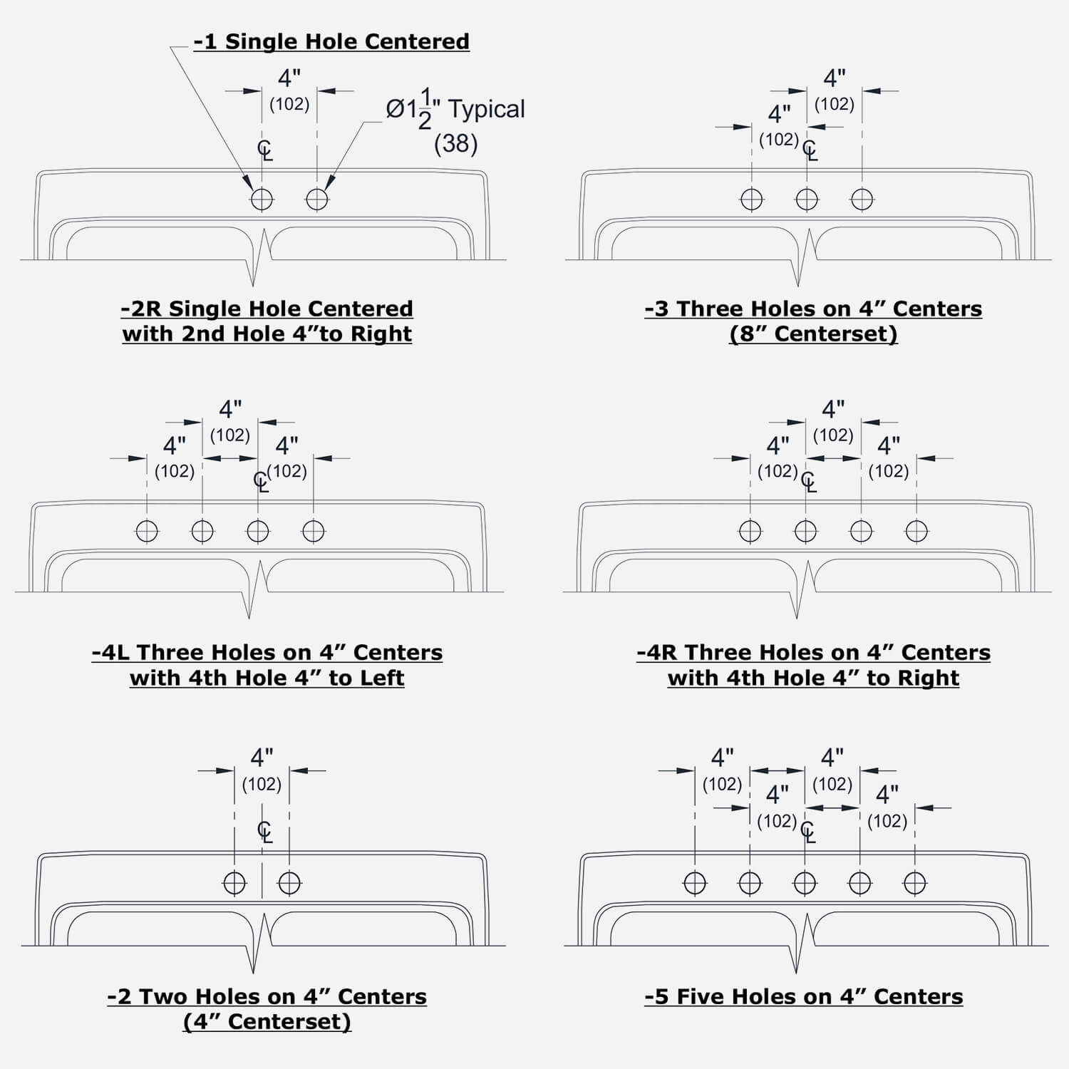 ![]() | Suffix -2R (Acorn-Sinks®) | Option: Acorn-Sinks® Two Punchings, Center & Offset Right | ||