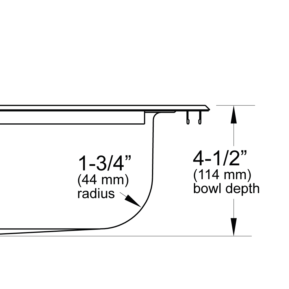 - Vertical side walls feature a 1-3/4" internal radius for increased resistance to glass tipping and breakage