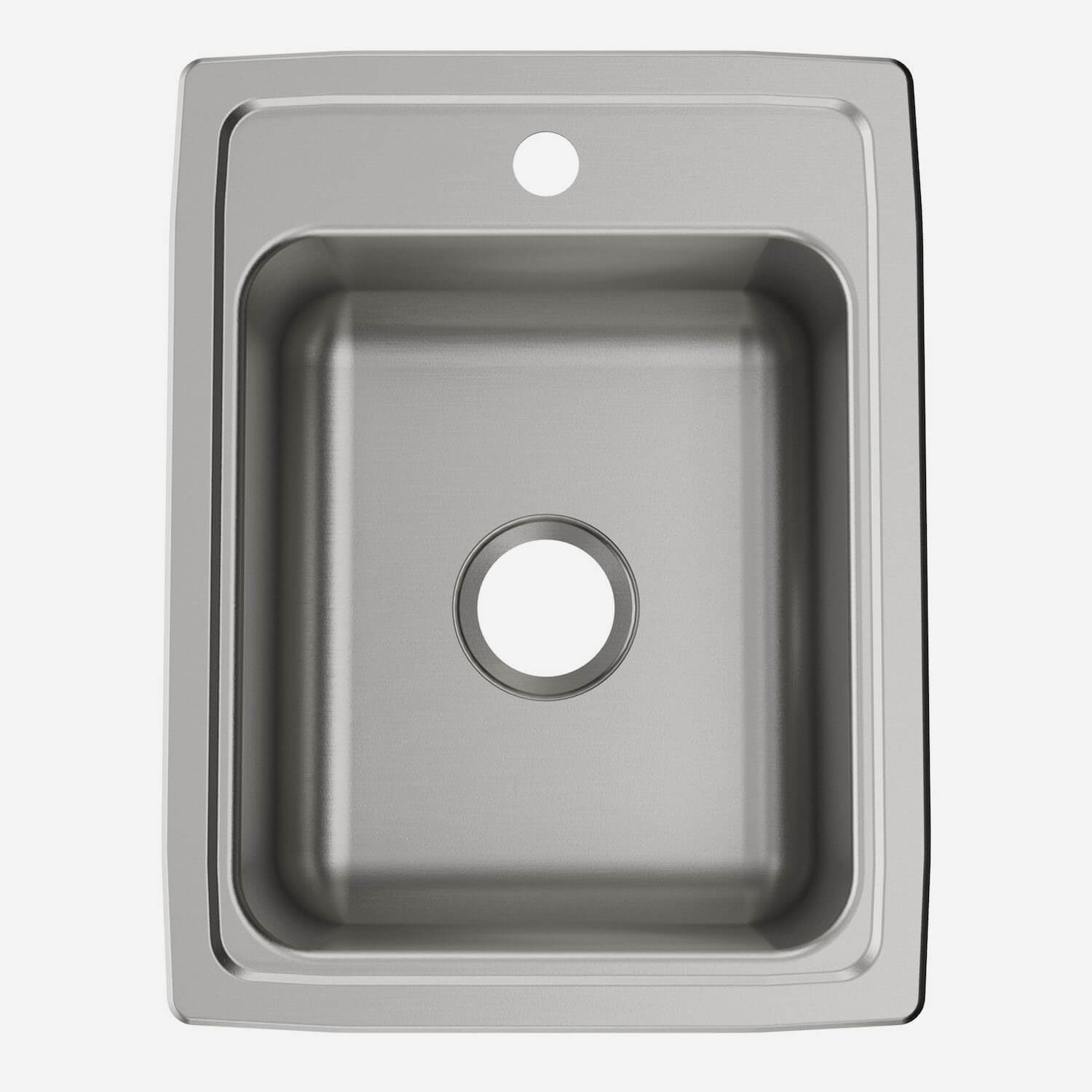 SD-1722 is a single bowl drop-in sink measuring 17" x 22" with a bowl size of 13-1/2" x 16". It has a centered drain and 8" or 10" bowl depth. A minimum cabinet size of 21" is required.