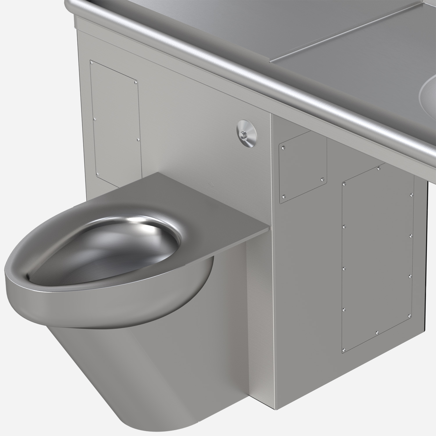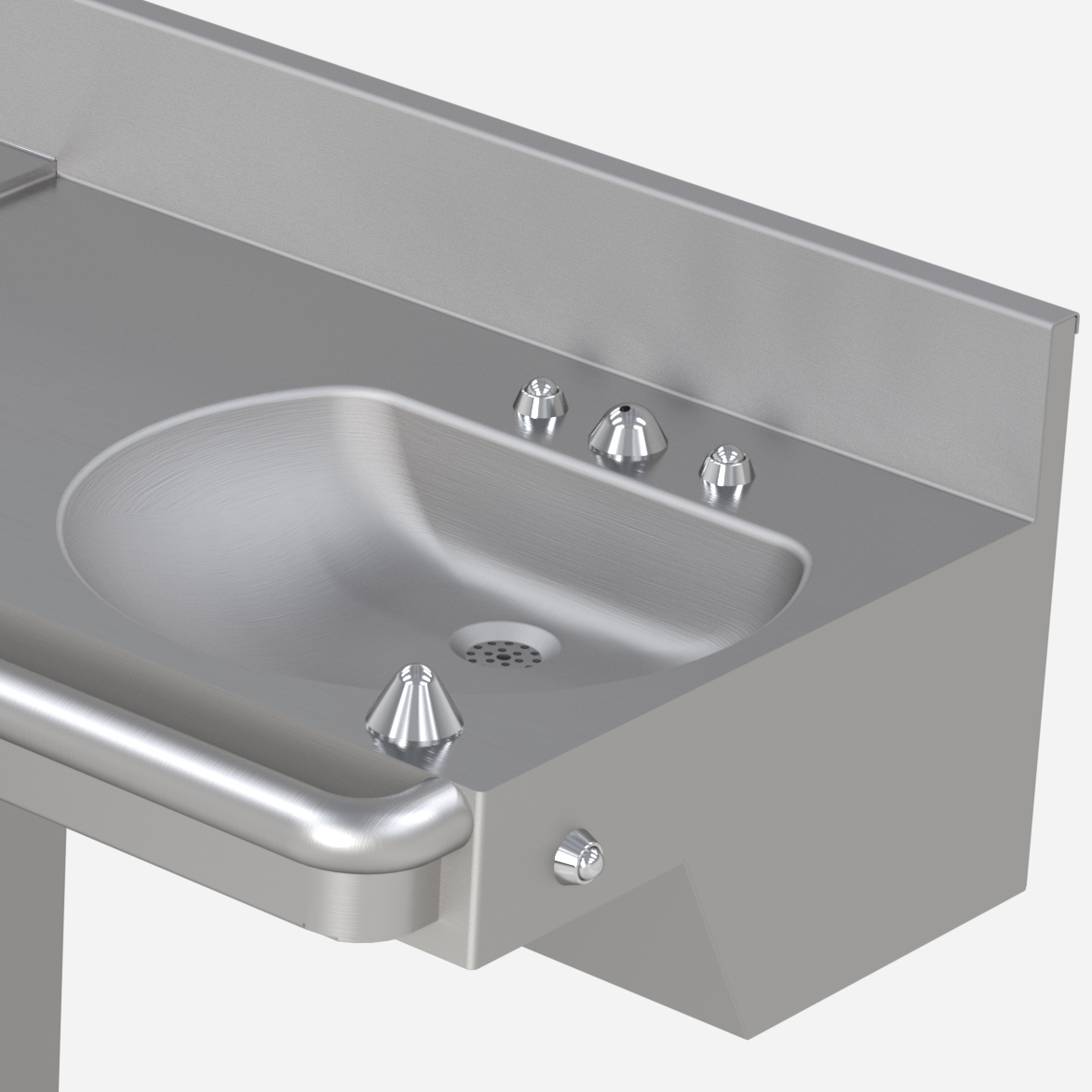 This product is designed to decrease the probability that it may be utilized as an apparatus for ligature. It is not a replacement for professionals who are trained in the proper evaluation, management, and supervision of persons at risk of suicide. The toilet is wider behind the bowl reducing ligature points. All activation buttons, spouts, bubblers are conical in shape. The drain in the sink is uniquely designed to limit ligature points.