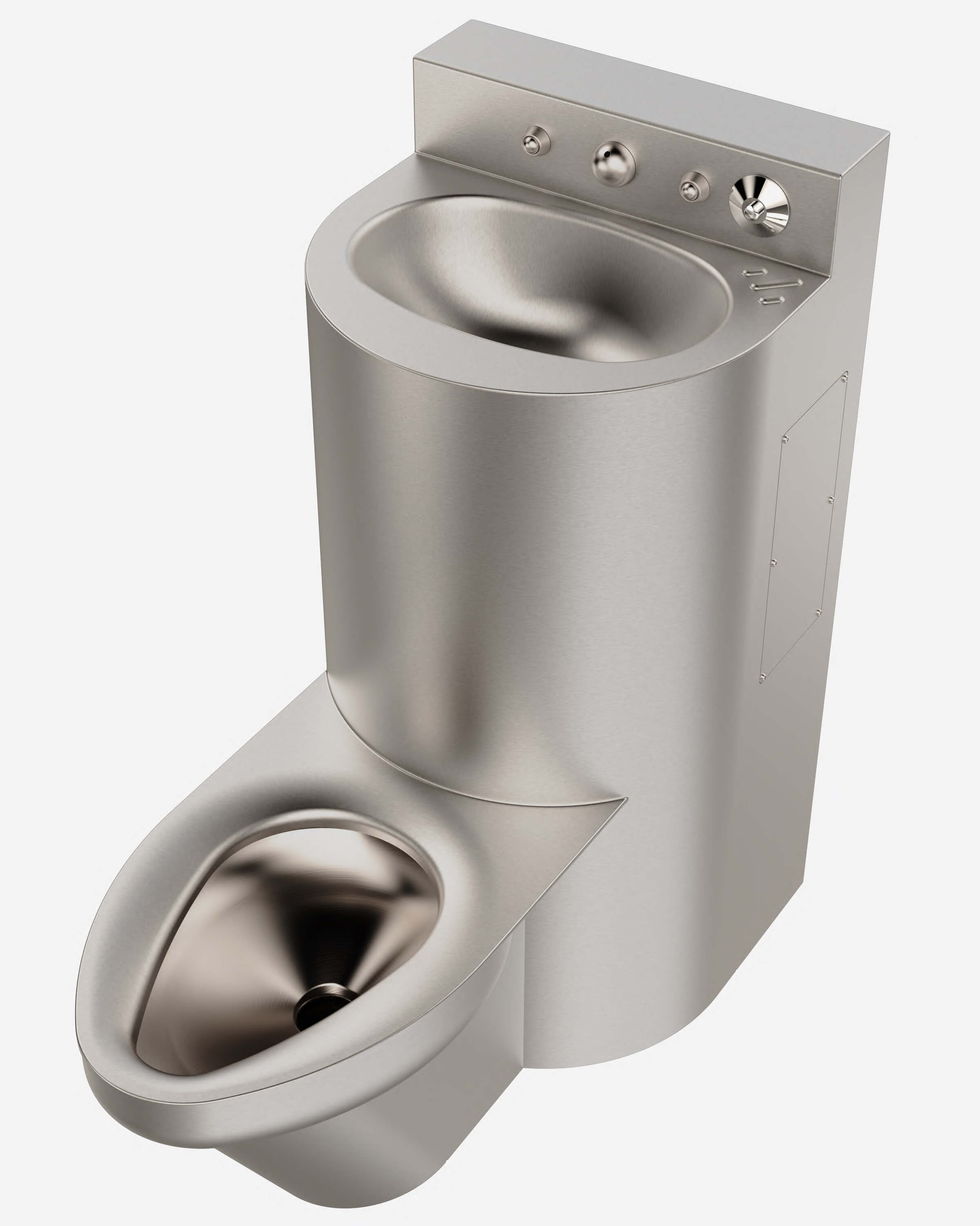Perfect for retrofits and new construction, this stainless steel comby is space-saving, vandal and ligature resistant. The lavatory cabinet measures 18 inches (457 mm) and features an oval bowl. The toilet can be specified angle left, angle right or centered. The fixture is configured with front access for installation and maintenance, where a typical security servicing chase is not available. I tis available in on-floor with a wall waste outlet, and on-floor with floor waste outlet configurations. This is a Secur-Care® Ligature-Resistant version of the 1418FA comby.