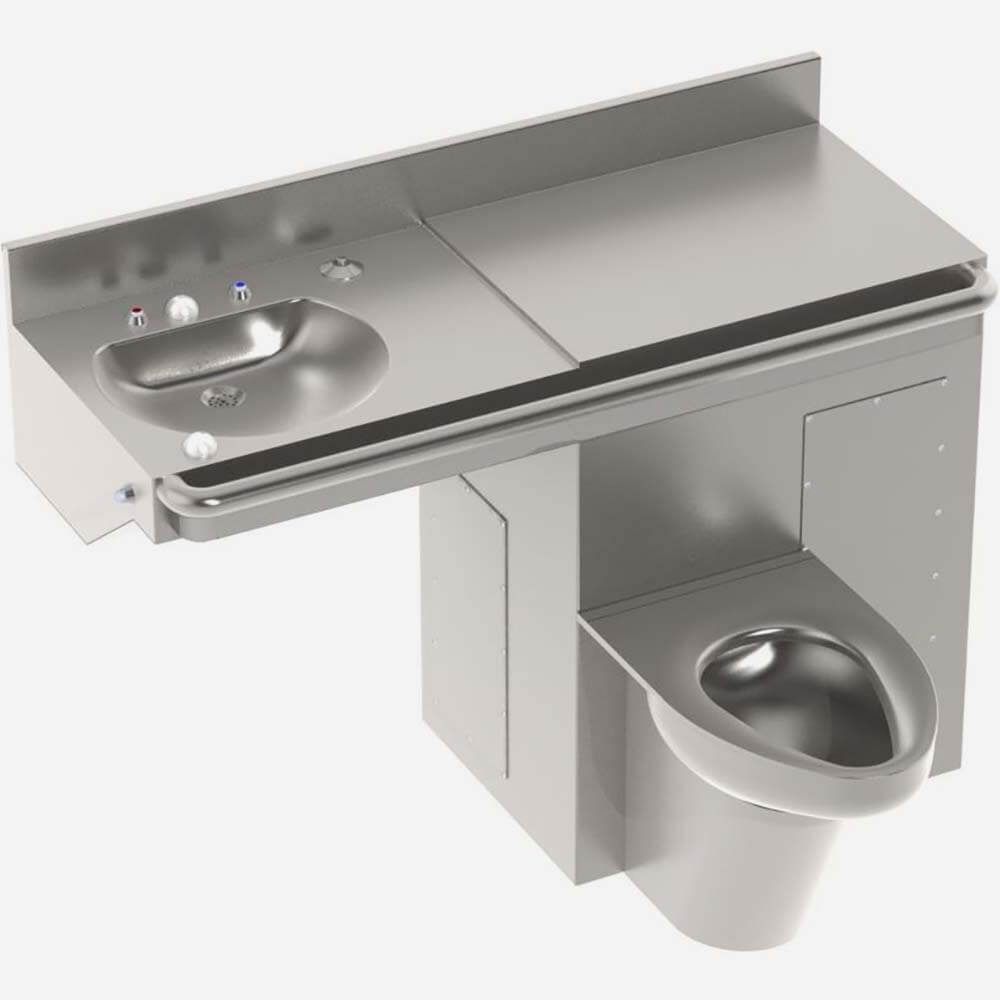 The lavatory-toilet comby is designed to meet the needs for ligature resistance, ADA, water conservation and the rigorous demands of security facilities.