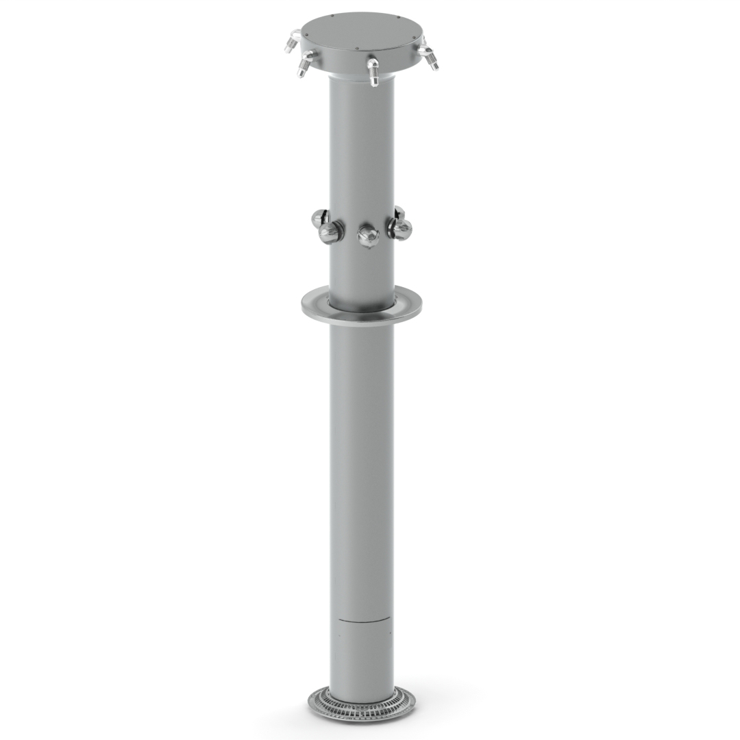 Shower column shall be 16 gauge, type 304 stainless steel with satin finish. Column shall be factory pre-piped and hydrostatically tested to 150 PSI. Drain base shall be heavy cast iron with a rust preventative coating.