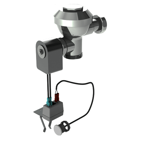 This option is for the electronic valve system with a single Piezo pushbutton. The Piezo pushbutton has no moving parts and is touch activation. When the Piezo pushbutton is touched this closes the circuit and activates the controller which activates the flush valve. An automatic reset Flood-Trol system is added to make the toilet resistant to overflowing. Once the water is above the Flood-Trol port this makes pressure on the switch then will not let the toilet flush until the pressure on the Flood-Trol switch is released.