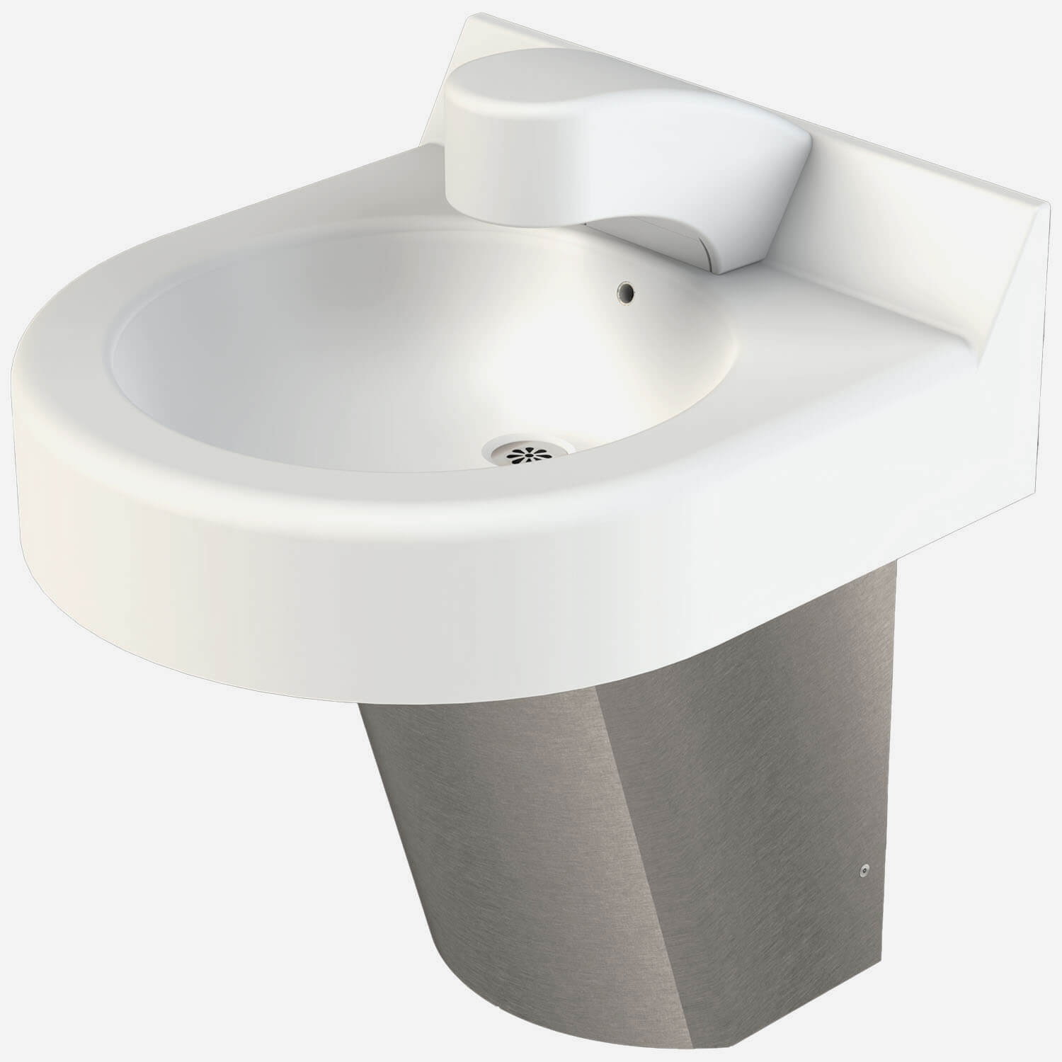 Perfect for high-traffic institutional, commercial and public applications, this curve-front one-station hand wash basin is made from environmentally-friendly Corterra®, which also offers design flexibility and durability. It features a wall-mount, off-floor or on-floor waste outlet configurations, and is ADA compliant when installed properly.