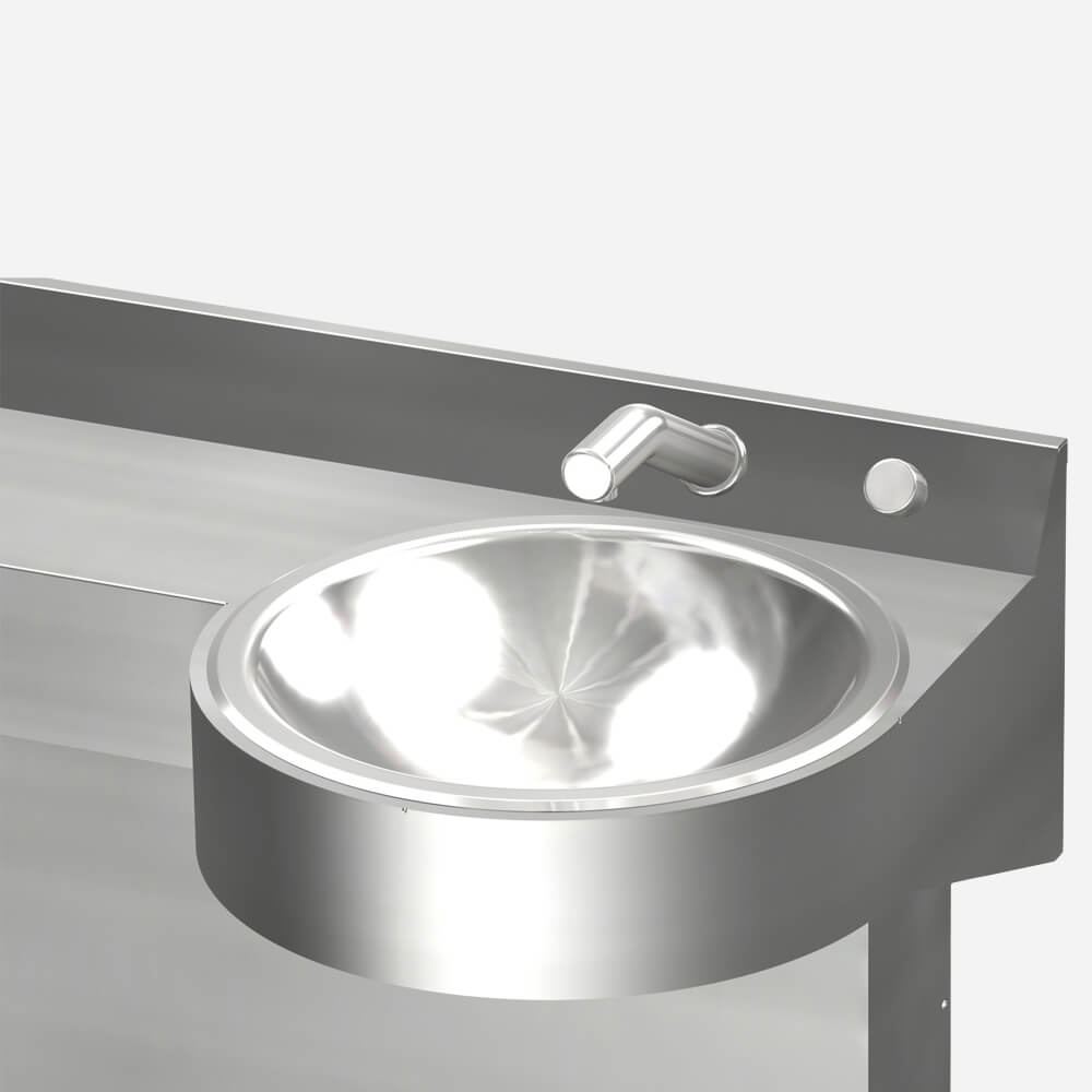 Mixing Valve and Spouts are optionally available to provide a metered, tempered water supply to each Basin. Spouts may be specified for Hand or Sensor operation and are intended for use with the optional Valve assemblies. Mixing Valve is ASSE 1070 compliant and includes Strainers and Integral Checks. Controls meet ANSI, UFAS and ADA requirements.