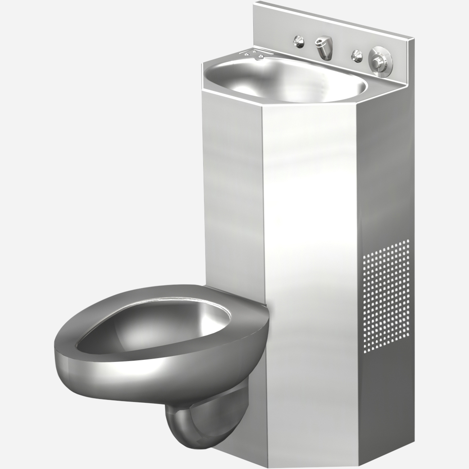 This 13" vandal resistant, stainless steel corner security lavatory is perfect for when space is at a premium. It features a multi-sided bowl, self-draining soap dish, and is designed for a right (chase) application. It mounts off-floor and has a wall waste outlet.