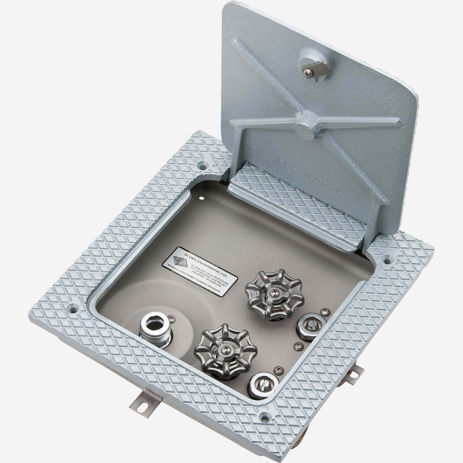 These Acorn Recessed Hose Boxes are CUPC® by IAPMO certified for U.S. and Canada. Boxes are designed for attractive service in both interior and exterior floors not subject to freezing. Ideal for installation in markets and similar commercial buildings in foot traffic locations or where wall box cannot be used. Vacuum breaker models prevent accidental contamination of potable water supply.