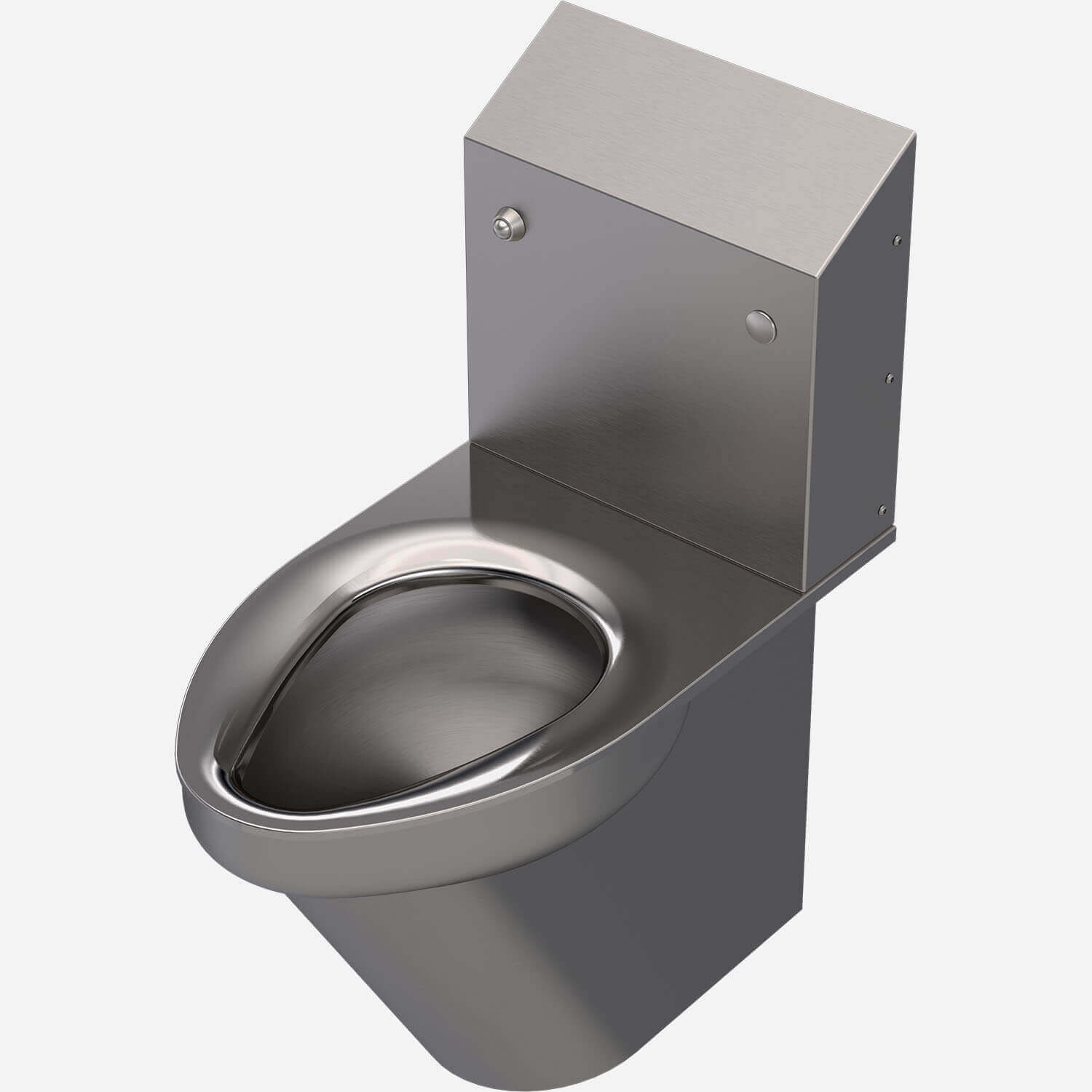 This stainless steel ligature resistant toilet is designed to be installed in a rear (chase) application. It is available with blowout jet, mounts on-floor, has a wall water supply, and wall waste outlet.