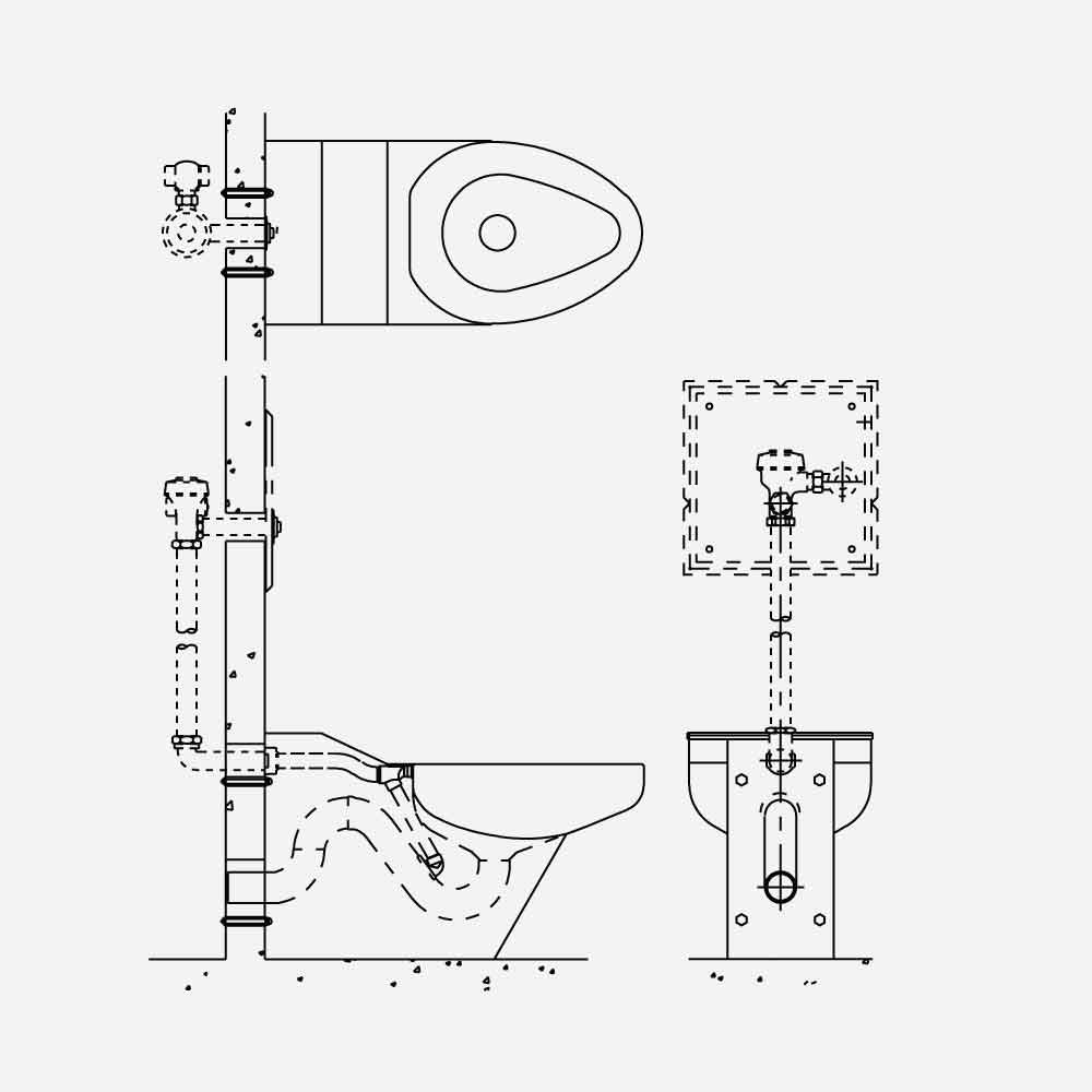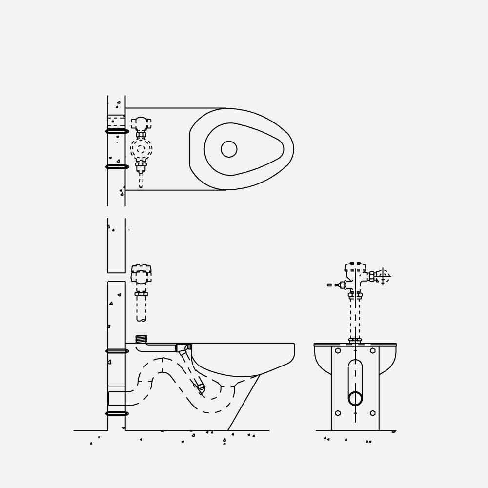 | Configurations Available | Top Supply - requires ligature-resistant cover for flush valve (-T), Wall Supply - concealed flush valve (-W), On-Floor with Wall Waste Outlet (-2) |