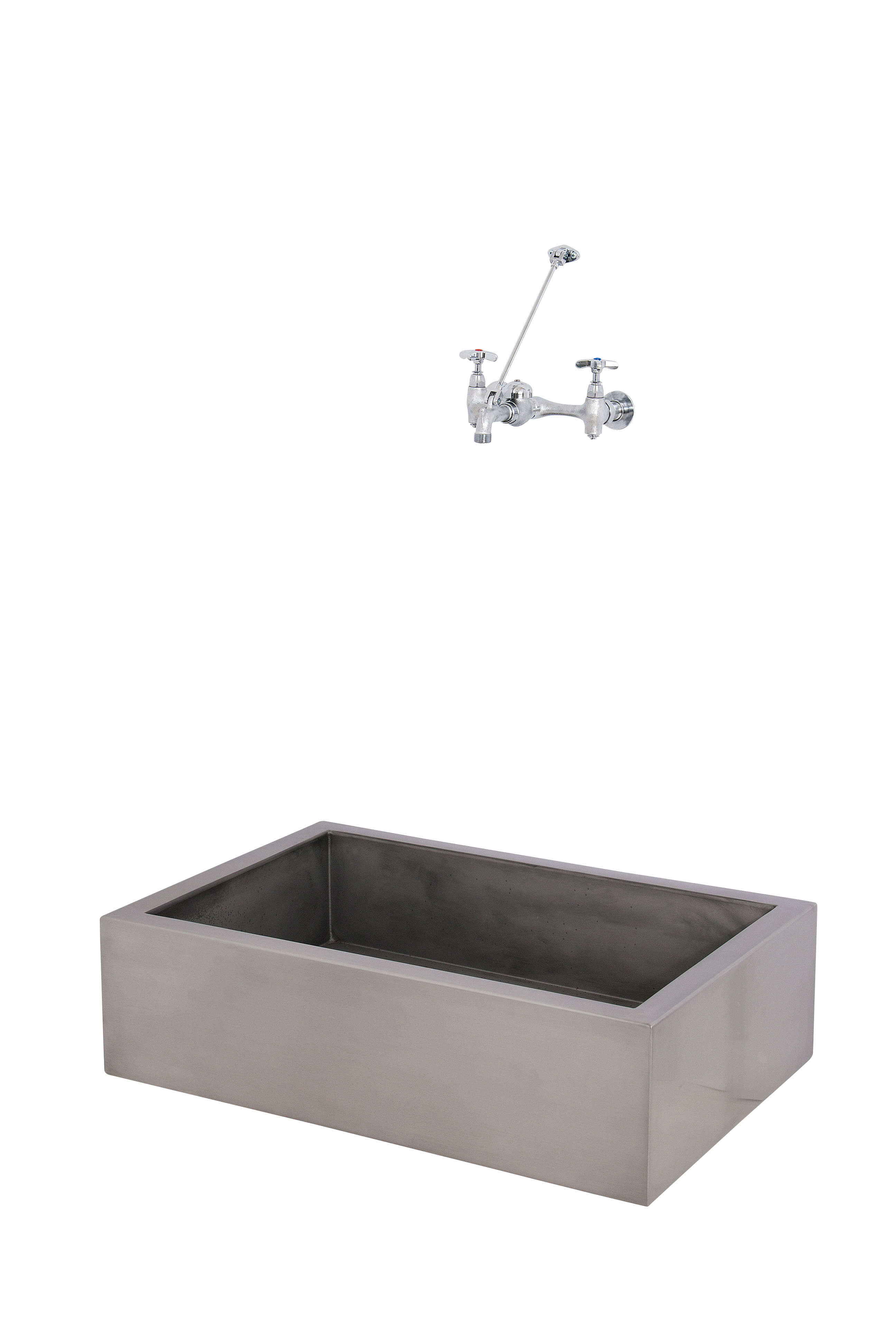 Perfect for retrofit and new construction where a larger basin is required, this mop sink is 8" deep and features and a fire-resistant integral basin and drain. The mop sink is pitched to the drain outlet to provide positive drainage and includes an apron on three sides.