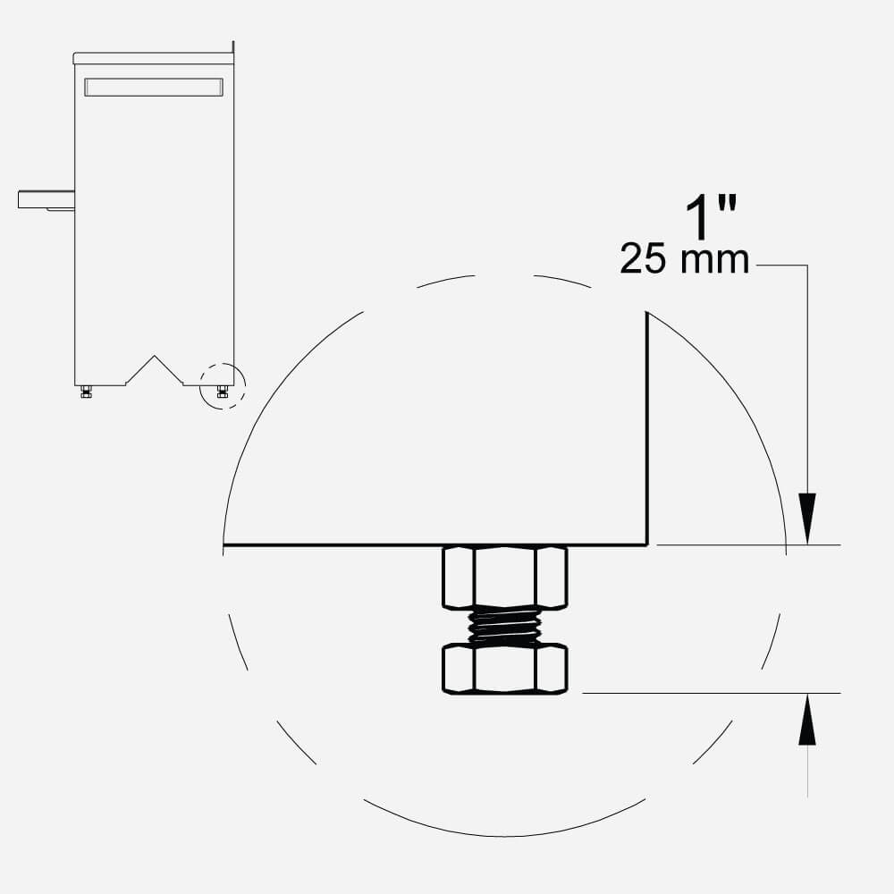 This provides an adjustable locking foot on Acorn SFDD Desk when specified.
