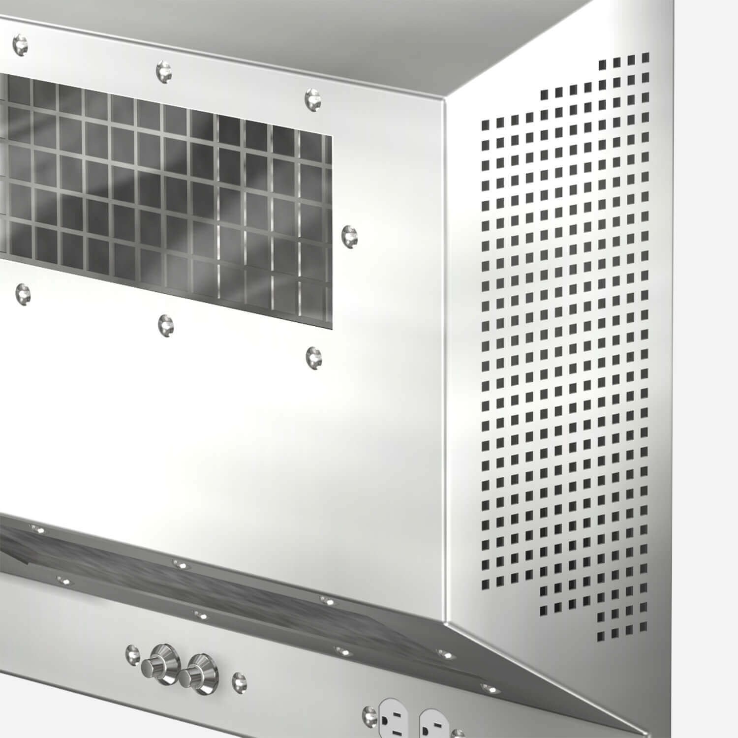 This vent grille is an integral part of the housing. The housing is provided with a supply air plenum with a 4" x 8" duct connection.