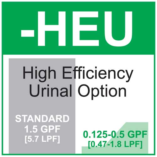 Option: High Efficiency Urinal Flush - 0.125 gallon (0.47 liters) to 0.5 gallon (1.8 liters) per Flush