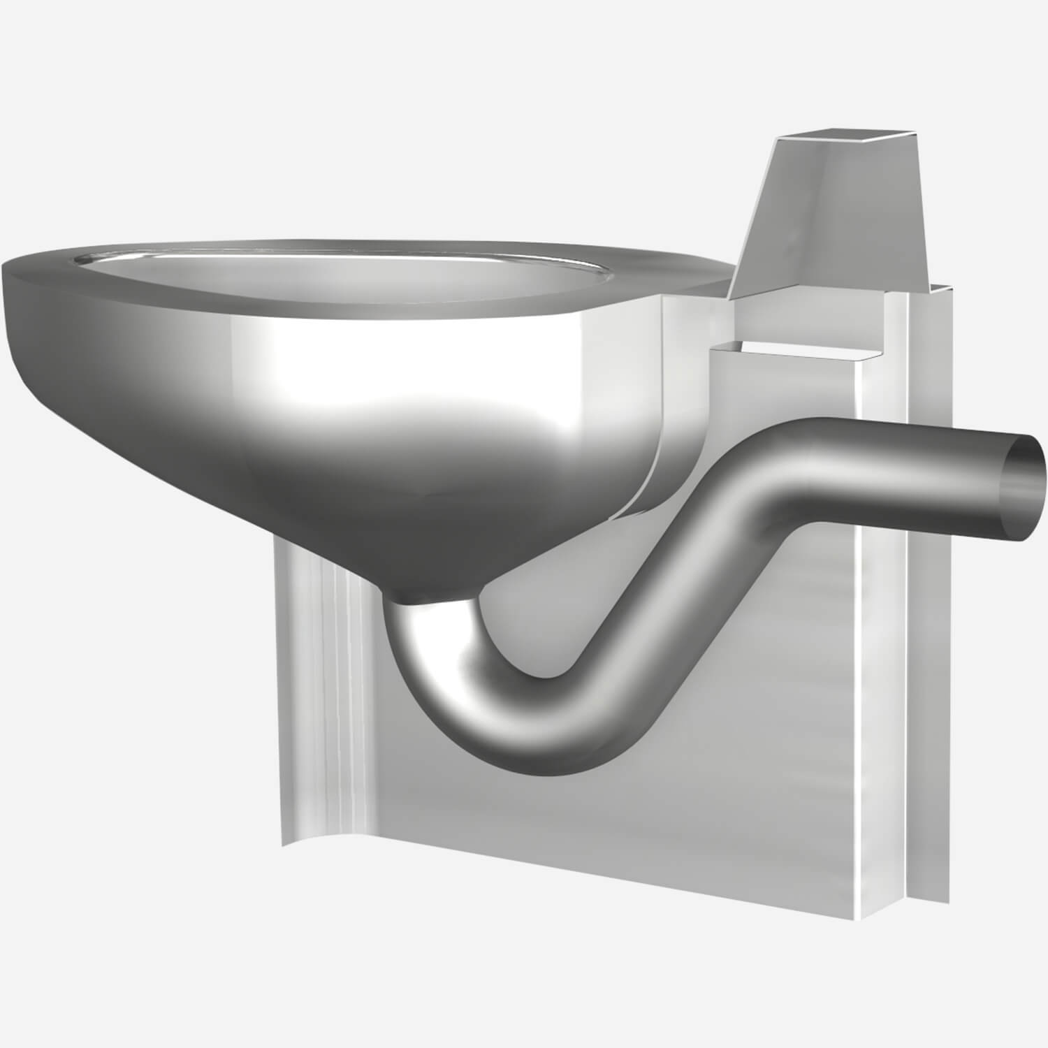 The fixture is mounted on the floor and is plumbed for a wall waste outlet.