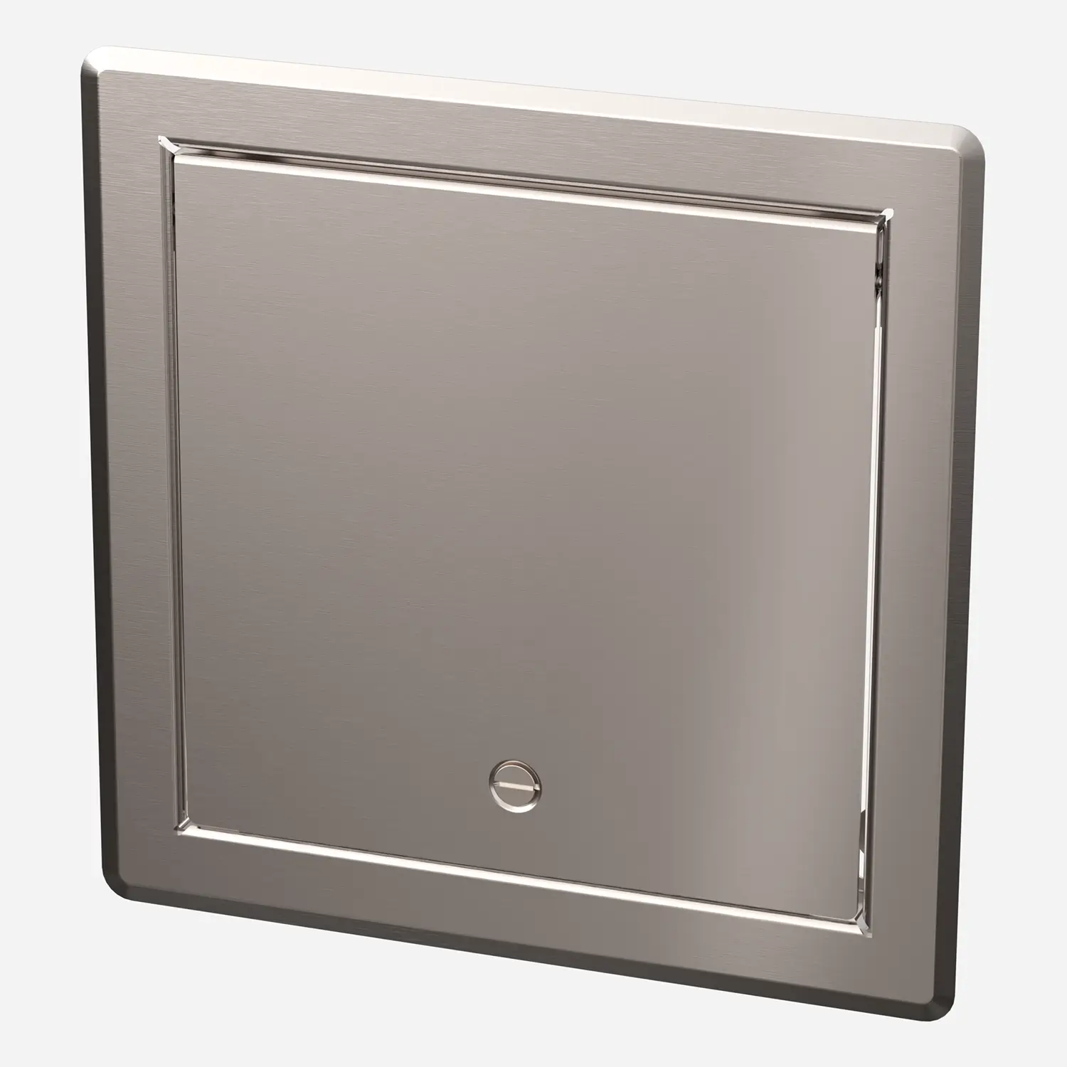 Latch options provide an alternative method of opening and closing the door without a Key and include a Concealed Latch that engages the Door Stop provided with the frame assembly. The door will have the Acorn logo removed to allow the hinge side to be rotated. Latches do not conform to ADA requirements.