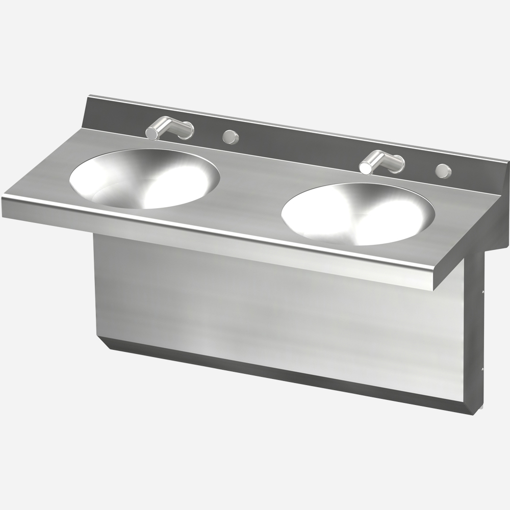 This option provides a 2-1/2" high narrow front apron for Stainless Steel Washbasins. It is intended as an alternative to the standard 5" high apron and is best used when a specific look is desired. This option is NOT available in conjunction with options -SES Scalloped Enclosure Style, -SLE Sloped Front Enclosure, or -EB Enclosed Bottom. AVAILABLE only on -1 Off -Floor Models.