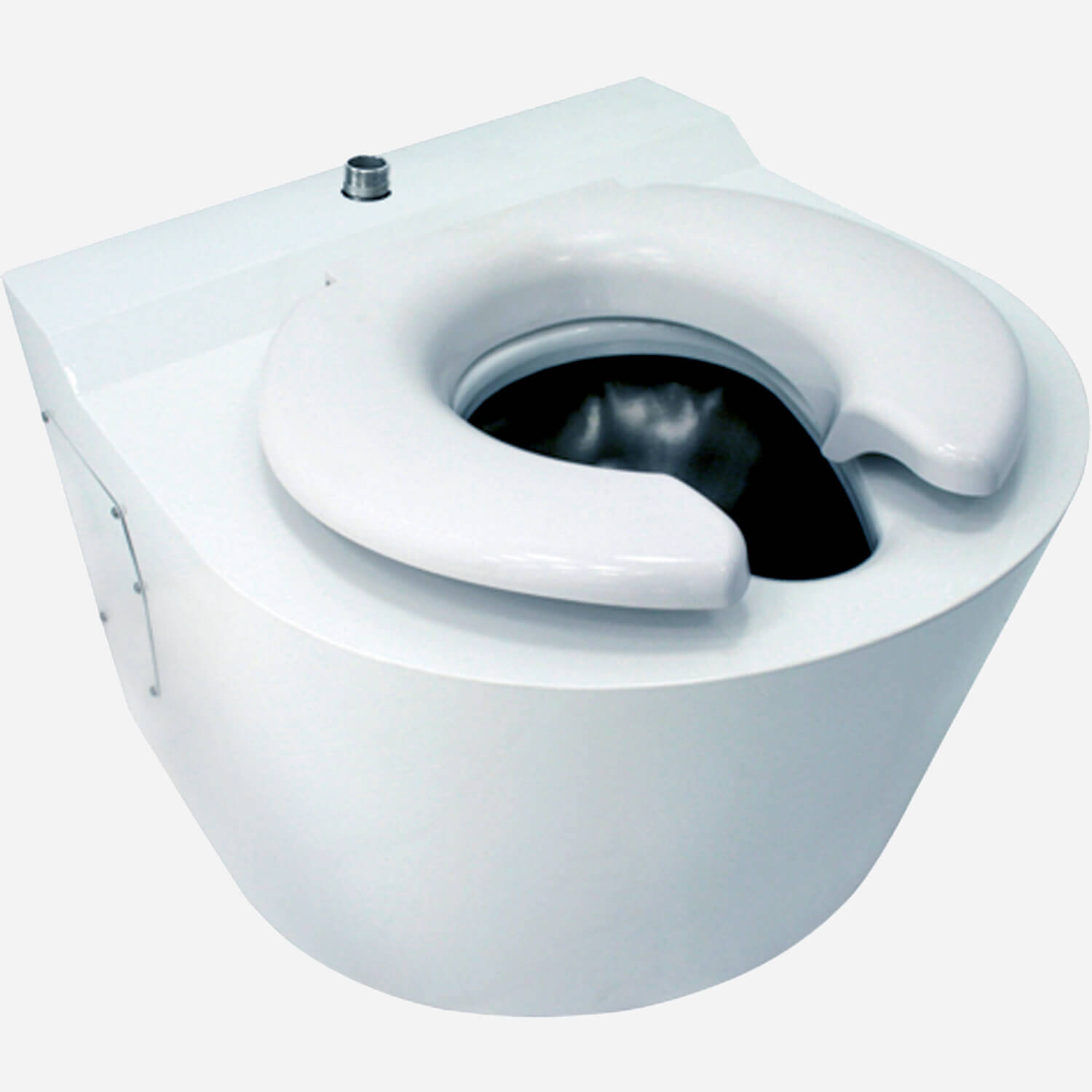 The toilets shown below are all front-mount toilets though rear-mount toilets are also available for rear-chase applications. The toilet measure 24" (610 mm) wide x 29" (737 mm) front-to-back. The exterior and bowl interior has a satin finish. The fixture, without the optional -HSBJ hinged seat) shall withstand loads up to 2,000 pounds (907.1 kg) with no measurable deflections. It can handle loads upto 5,000 pounds (2267.9 kg) with no permanent damage. The optional -HSBJ seat is rated at 1,200 pounds (544.3 kg). Optional -EG Enviro-Glaze color finishes are available.
