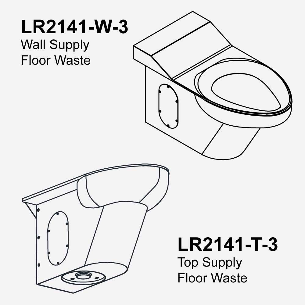 | Configurations Available | On-Floor with Floor Waste Outlet (-3), Top Supply - requires ligature-resistant cover for flush valve (-T), Wall Supply - concealed flush valve (-W) |