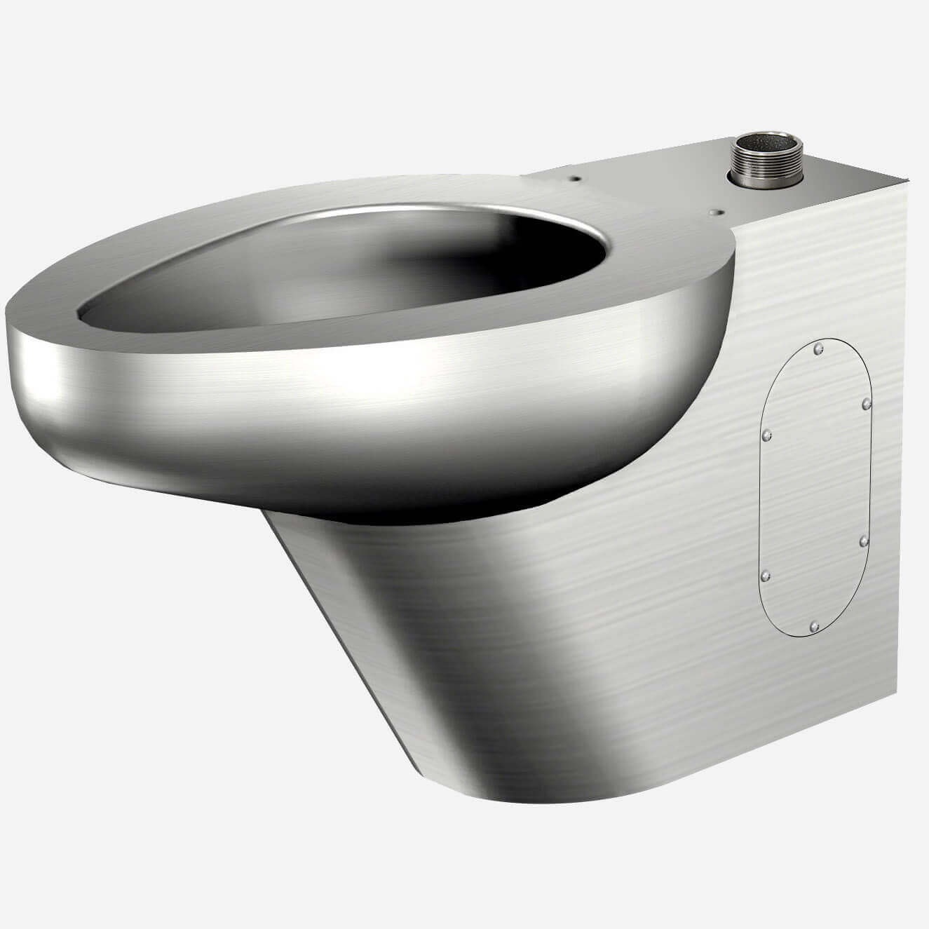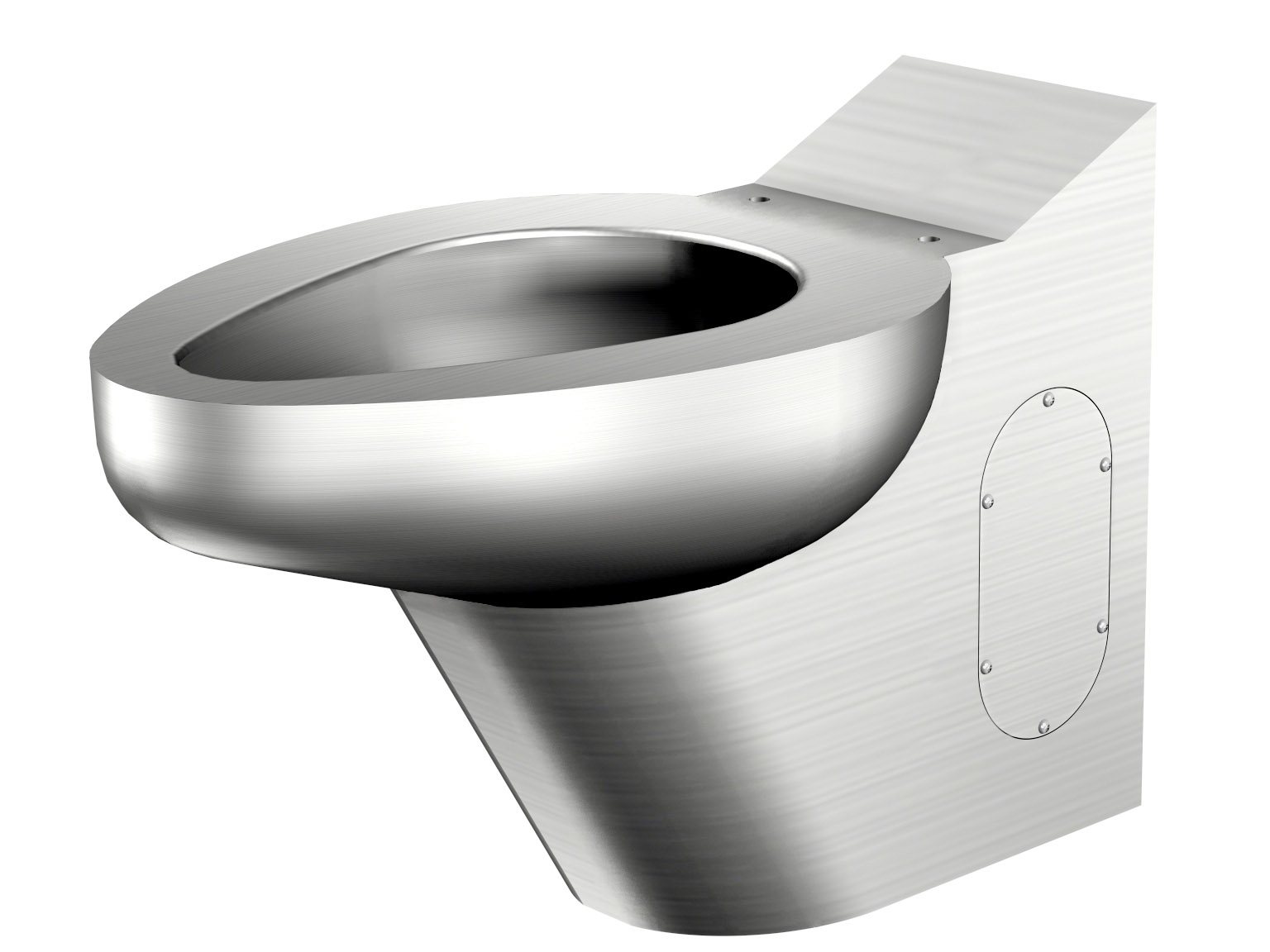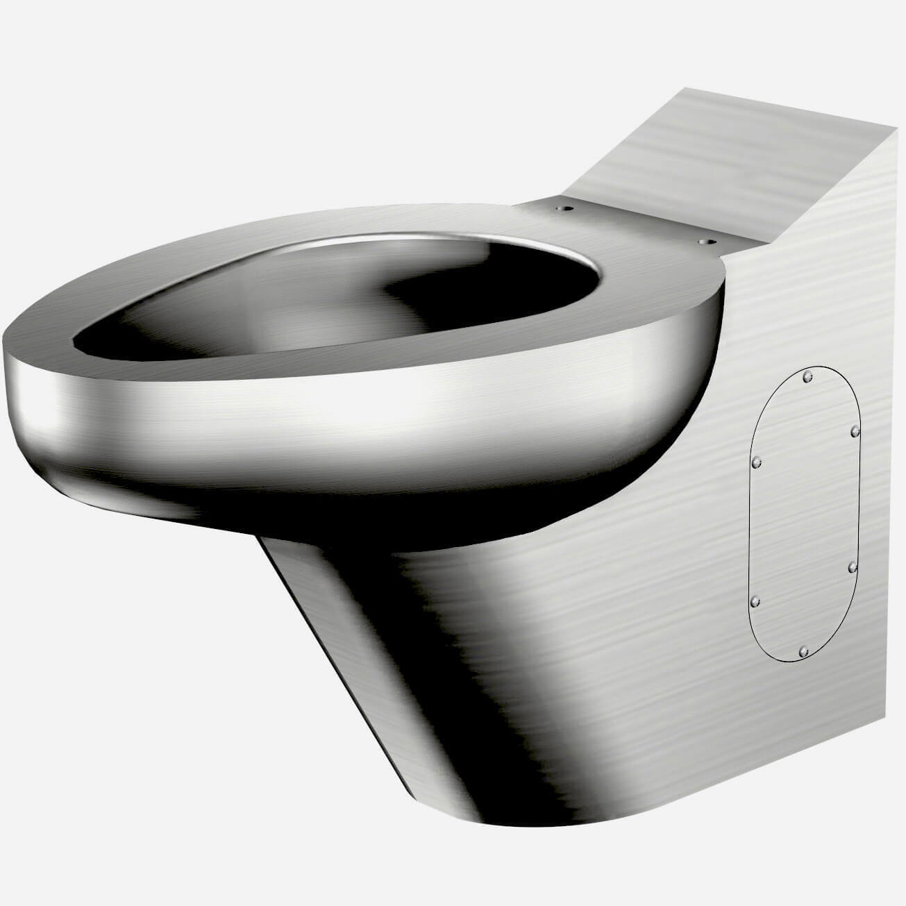 This stainless steel toilet is designed to be installed either from the front or in a rear (chase) application. It is available with blowout jet, mounts on or off-floor, has a wall water supply, and wall waste outlet. This toilet can be specified with an ADA seat height of 18 inches (457.2 mm).