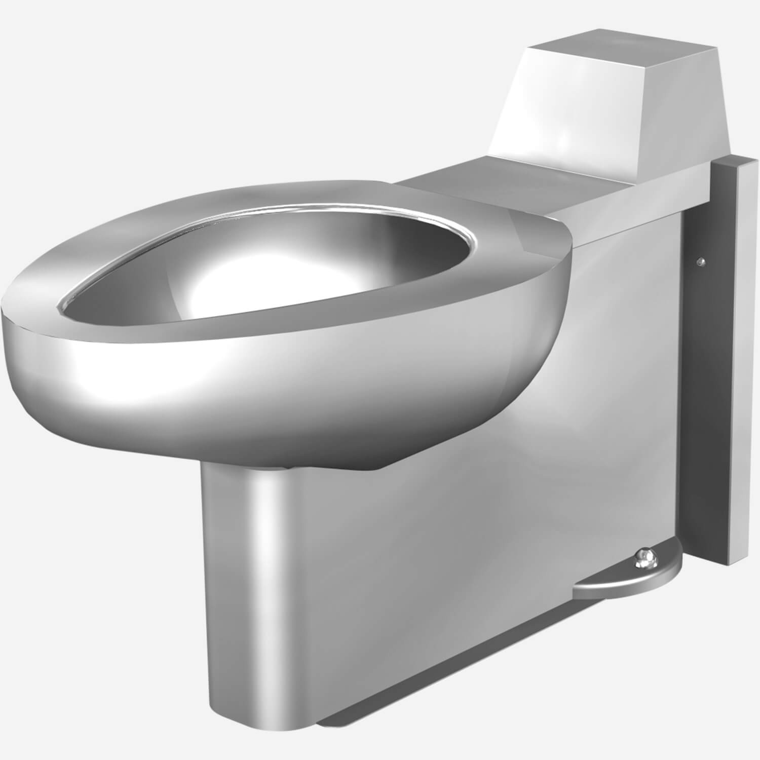 This stainless steel security replacement toilet is designed for a rear (chase) application. It is available with siphon jet, mounts on-floor, has a wall water supply, and floor waste outlet. This toilet can be specified with an ADA seat height of 18 inches (457.2 mm).