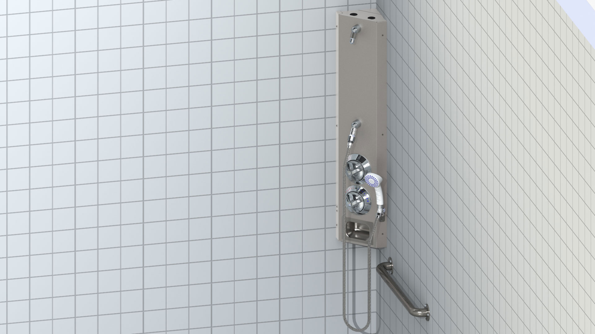 | 420BHC Shower (hi res jpg) | Handicap (Non-ADA) Corner Mount Stainless Steel Apex Shower with Fixed Shower Head Handheld Shower, Temperature-Pressure Balancing Mixing Valve with Ligature Resistant Tri-Lever Handle (ASSE 1016 Compliant) Recessed Soap Dish and 2' (1108-1) Grab Bar | 0 | 189 KB | |